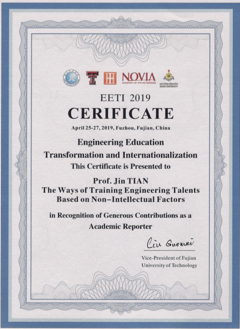 院长田锦教授、通信党支部书记刘静博士、通信工程系系主任孟超博士、网络工程系系主任翟洪军博士全程参加了会议。刘静、田锦撰写的论文《基于非智力因素的工程人才培养途径》入选大会资料,田锦教授受邀在“面向未来的工程教育与学生工程实践能力培养”分论坛做题为《Ways of Training Engineering Talents Based on Non-intellectual Factors》主题发言。此次参与国际学术研讨会必将对黄色直播
