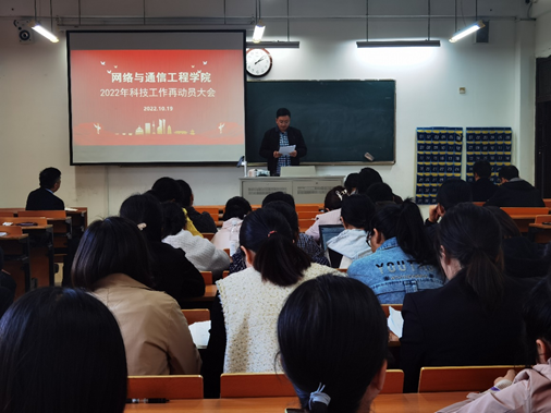 近年来的科技工作和高级别项目整体的申报与立项情况,介绍了学院科研任务和目标完成情况,在随后进行的经验交流环节中,本年度国内访问学者刘威老师做了个人在东南大学为期一年的访问经验和科研收获;光电信息系朱荣刚老师做了横向课题的申报过程中的心得体会,并提出从企业需求出发推进落实横向项目申报;通信系孔令军副教授就专利申请、授权及转化等方面内容做了详细的讲解和经验分享。