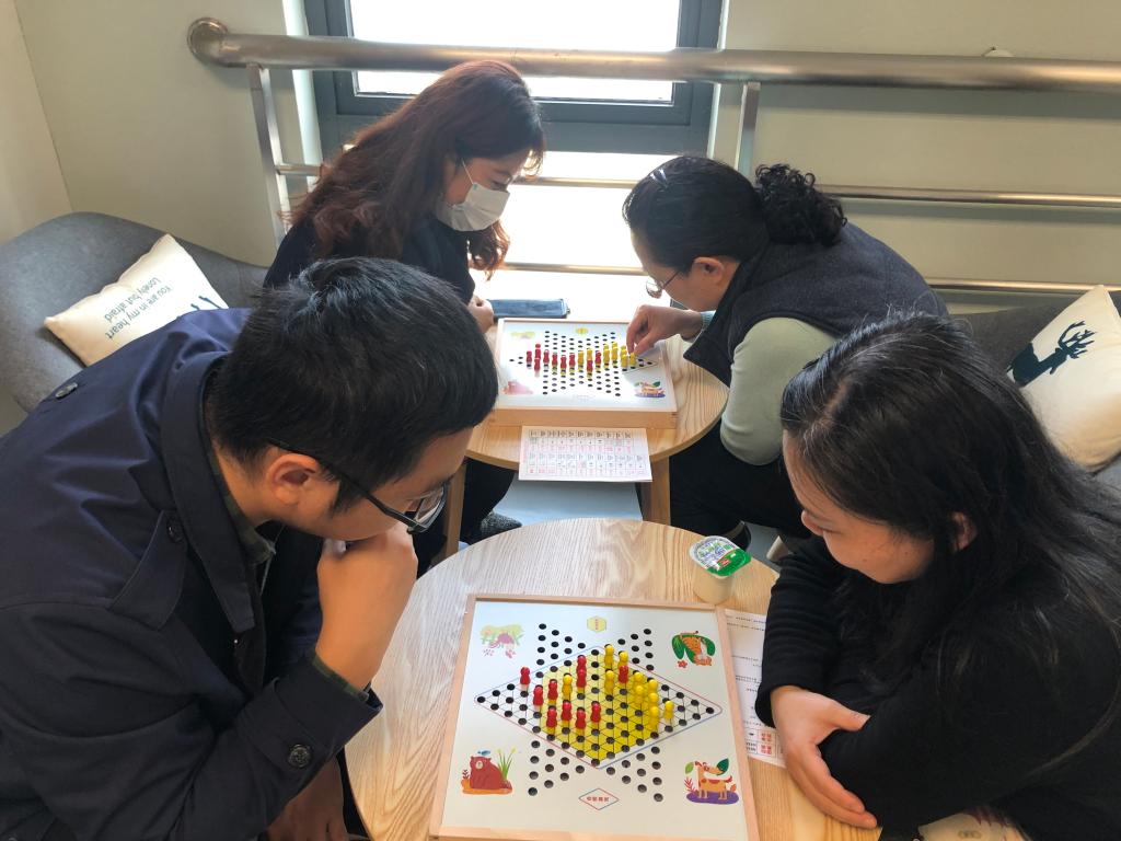 金秋10月,校工会和黄色直播 承办的棋牌俱乐部于30日中午在江宁校区图书馆六楼职工书屋举办了金科院教职工跳棋比赛。