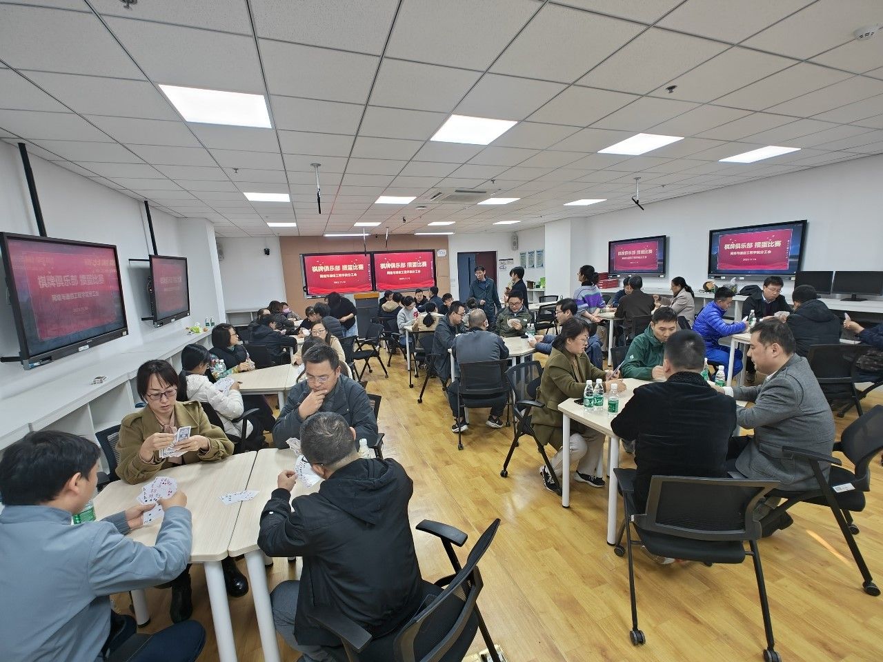 本次比赛共吸引了80余名棋牌爱好者参加。选手们摒息捻子、精心布局,落子声此起彼伏,方寸棋盘上,上演着一场场令人紧张的精彩对弈。牌手们斗志昂扬、出牌果断,比赛现场暗潮涌动、激烈纷呈。