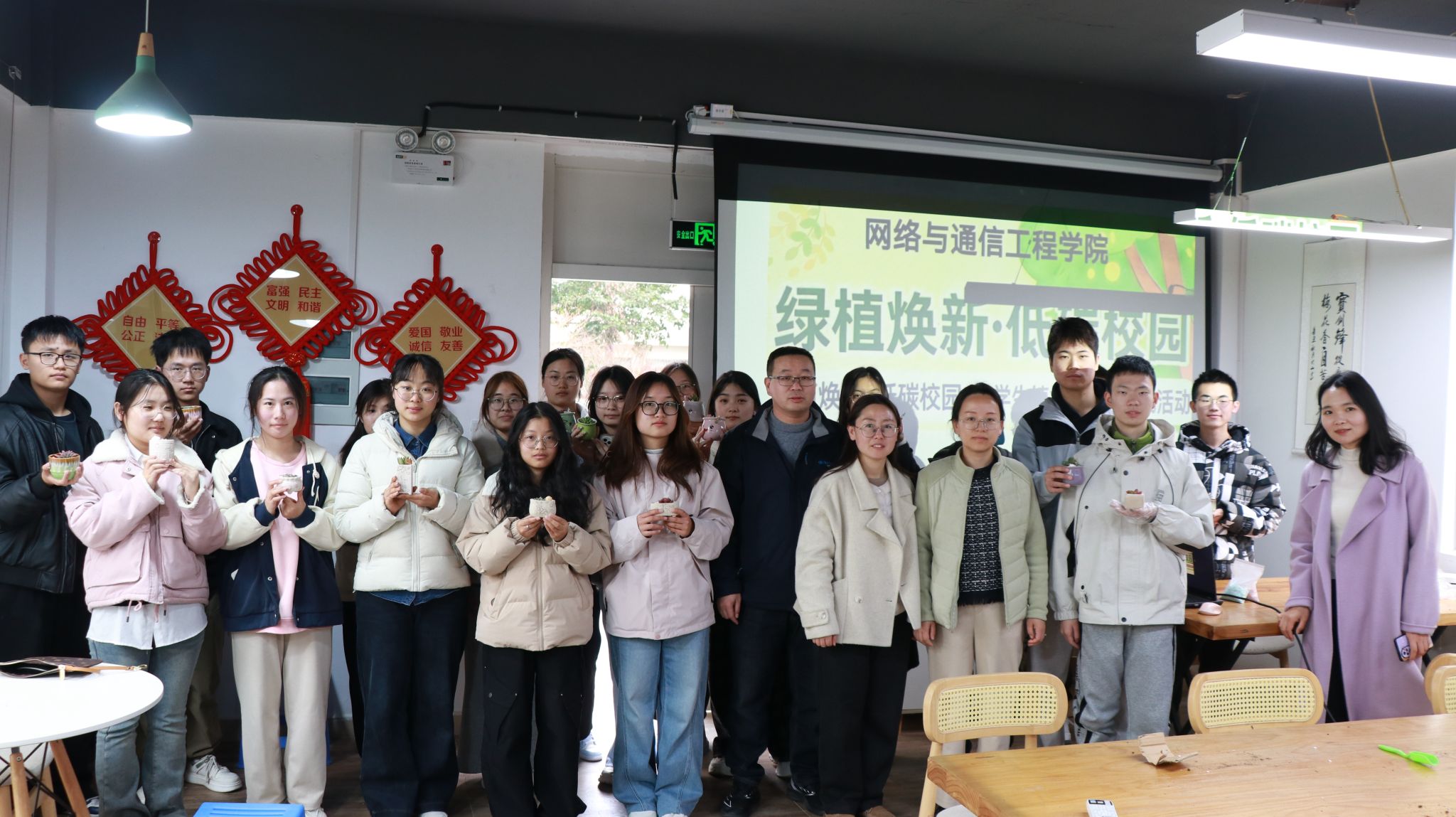 此次活动将环保实践与手工创作深度融合,不仅让废旧物品实现再利用,践行了低碳环保的生活理念,更让同学们在亲手创作的过程中亲近自然、舒缓身心,感受园艺创作的乐趣。