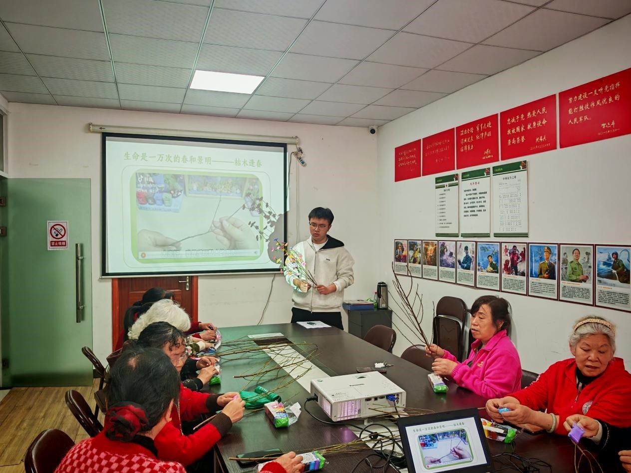 星火志愿社同学赴邓府山社区开展青心益行・善治同行社区服务活动,活动以“枯木逢春”创意花束手工为载体,将手工创作与老人心理疏导深度结合,帮助社区老人缓解孤独、舒缓情绪,丰富精神生活。