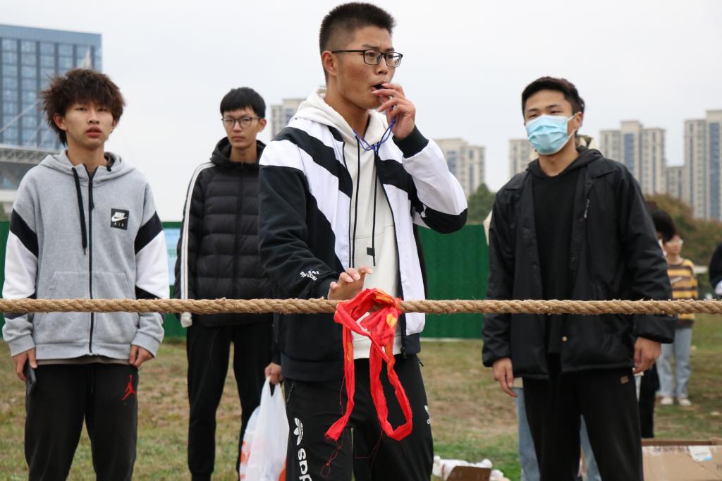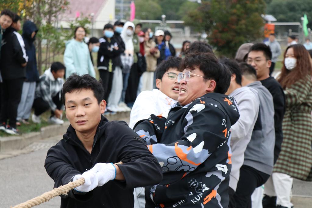 秋高气爽的天气下,参赛选手充满着青春热情,个个跃跃欲试。观赛的同学也十分期待比赛,时刻准备为自己的队伍呐喊助威。裁判等待双方准备好后,将口哨放在嘴边,一只手高高举起,在场所有人屏住了呼吸。随着一声哨响,现场的气氛瞬间活跃起来,所有参赛队员使尽全力,双手攥紧绳子,拼命往后拉,脸上的肌肉被绷的紧紧的,周围助威的呐喊声震耳欲聋,双方在经过了激烈的战斗后,绳中间的红布条终于偏向了一方,伴随着又一声哨声的响起,赛场上随即响起了胜利折的欢呼声……