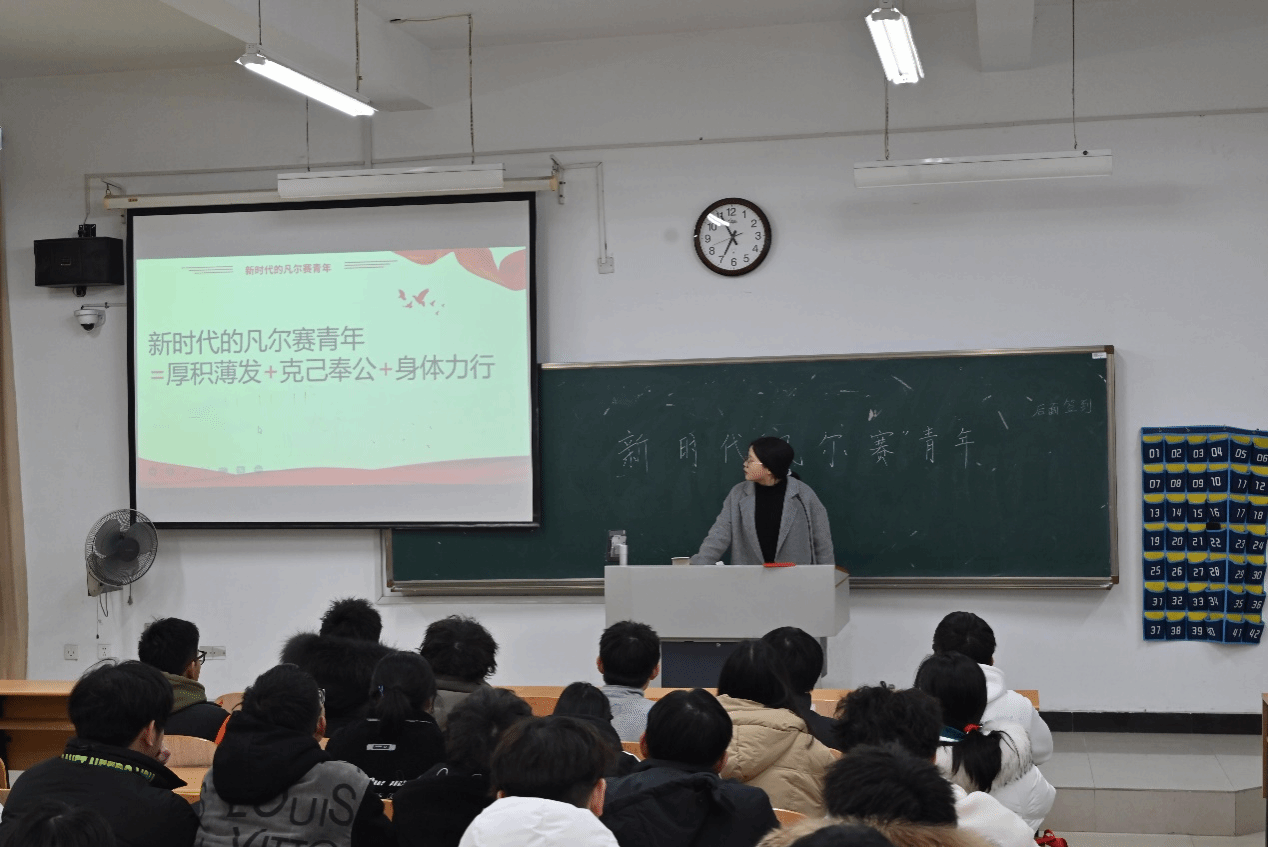 本次活动在高园老师的主持下正式开始,由秦心怡同学负责演讲。她演讲的主题为——《新时代的“凡尔赛”青年》。秦心怡首先借用李白等古人凡尔赛的例子来进入主题,向在座的同学讲述了当下青年在疫情中万众一心、冲锋陷阵的事例。那些不忘初心、甘于平凡,始终坚持为人民服务的先锋模范,就是我们要学习的新时代的好青年。最后,同学们积极互动,就“我们如何成为一个新时代的凡尔赛青年”、“新时代的凡尔赛青年对社会有什么积极影响”等问题畅所欲言。同学们纷纷表示要争当新时代的凡尔赛青年,厚积薄发、克己奉公、身体力行,应当具备中国担当、中国力量、中国精神,要做一个有理想、有担当、能吃苦、肯奋斗的新时代的“凡尔赛”青年。