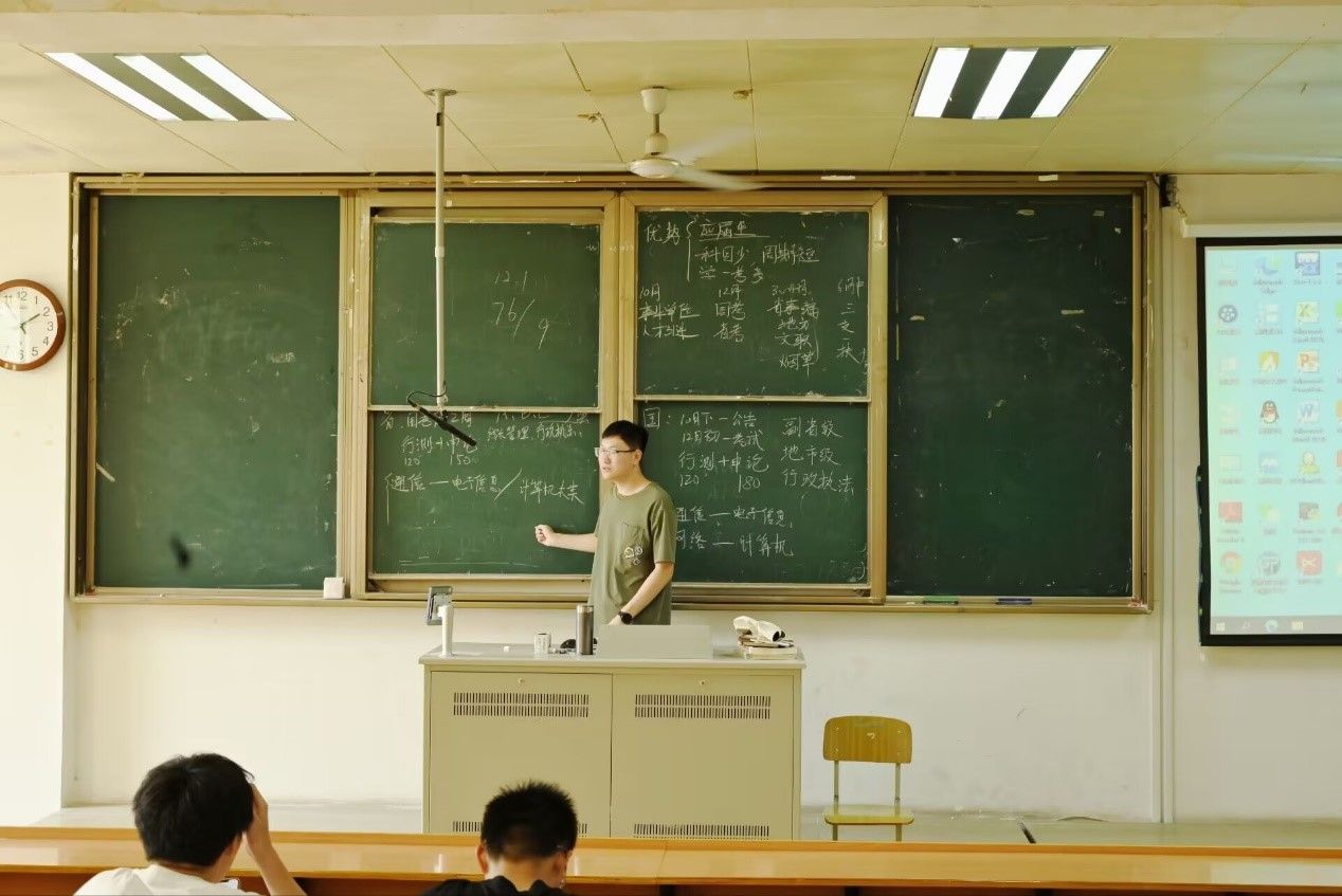 在1232教室举办毕业生经验交流会。高泓、牛清玮、于武巧、李长鹏四位19届学长学姐介绍考研、求职经验,部分大一、大二、大三学生参加了交流会。
