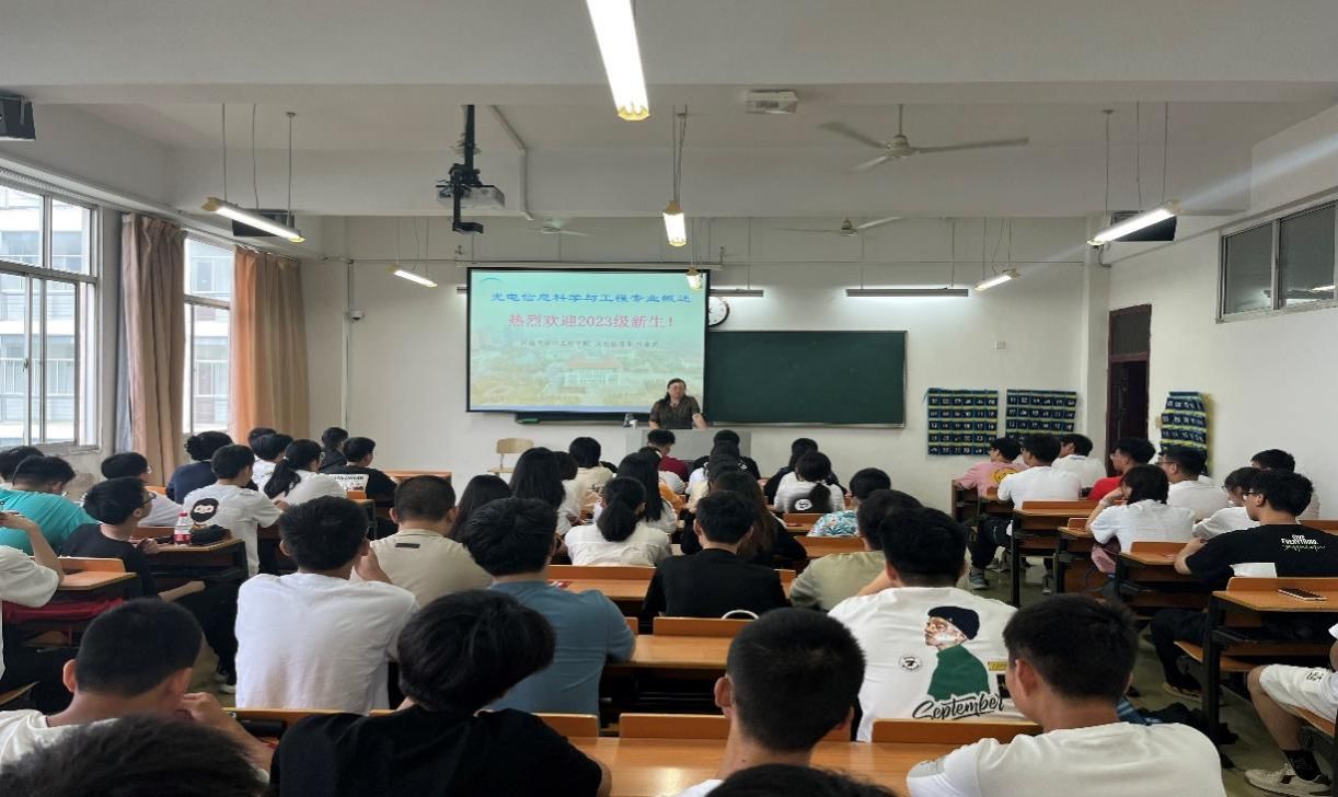 光电信息科学与工程系在1415教室举行新生专业教育暨教授面对面讲座。系专业负责人杨慧珍教授、系主任叶全意副教授、新生班主任陈鹏、戴西,辅导员袁彩霞以及2023级光电信息科学与工程专业全体新生参加了本次活动。