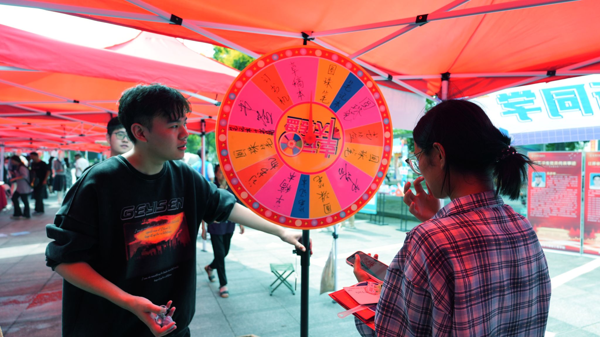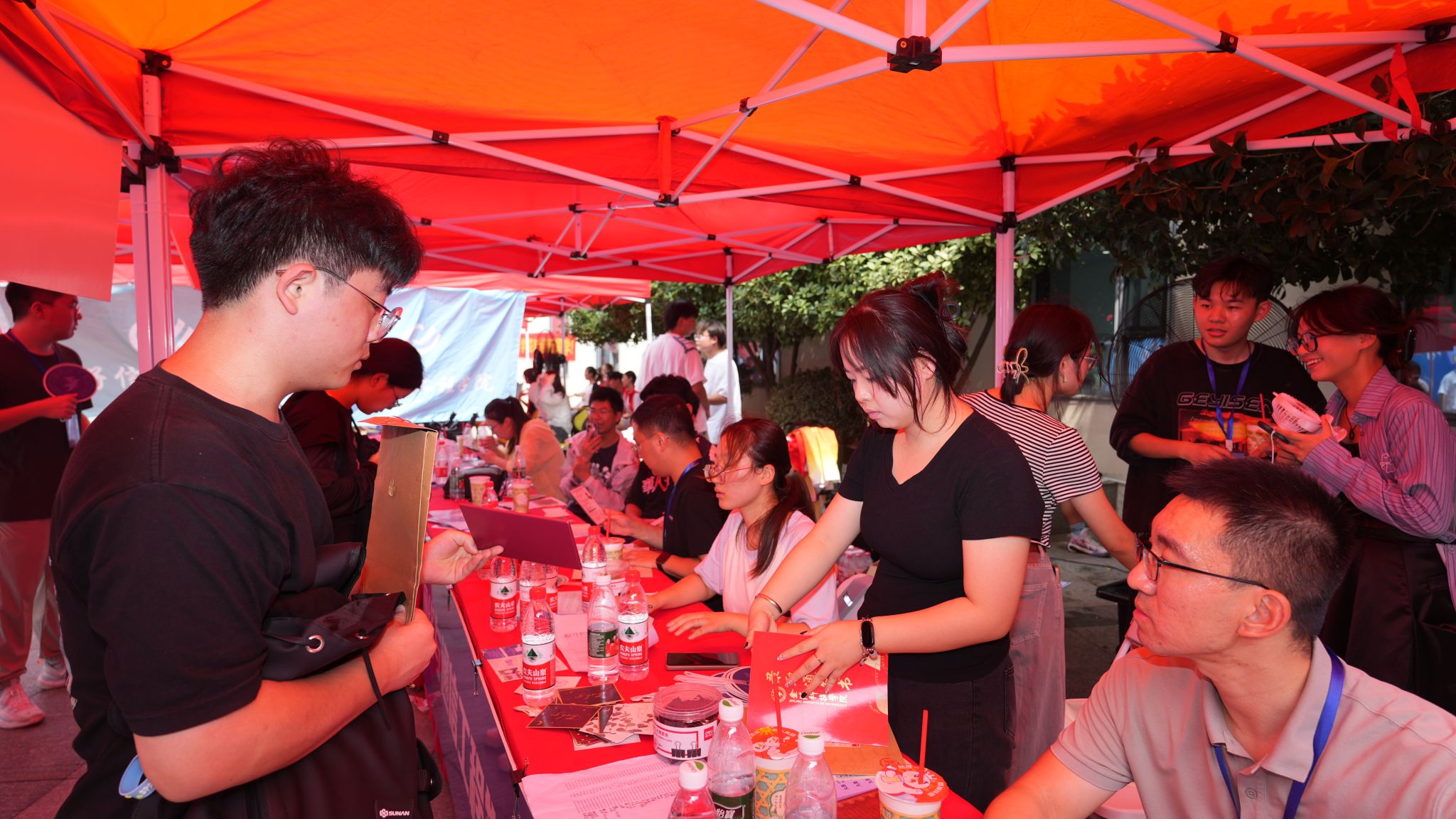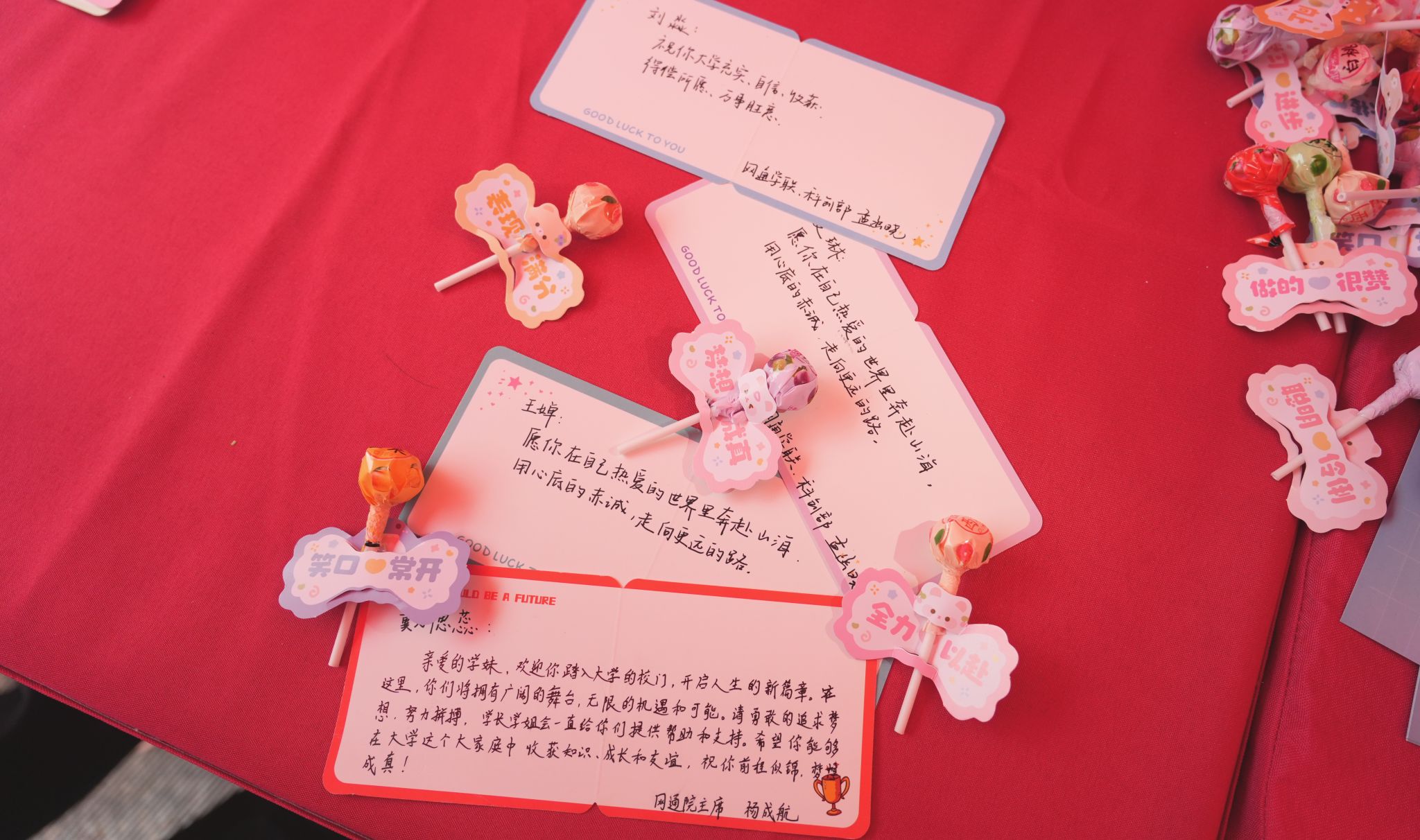 青春洋溢、朝气蓬勃的新生们为校园注入了新鲜血液,增添了靓丽的风景,也即将在这里开启人生新的征程。报到现场,学院精心布置的打卡框吸引着新生及家长们驻足拍照、合影留念,学长学姐们把自己亲手书写的贺卡和带有祝福语的棒棒糖递到了每一位新生手上,对他们的未来寄予了无限希望。在幸运大转盘旁边,新生们转动起了幸运之轮,对着采访镜头憧憬美好的大学生活。身穿“红马甲”的志愿者在学校大门、宿舍和报到点,热情礼貌的接待着新生及家长,他们的一声欢迎、一个微笑、一次讲解,汇聚了迎新季的温暖与感动。