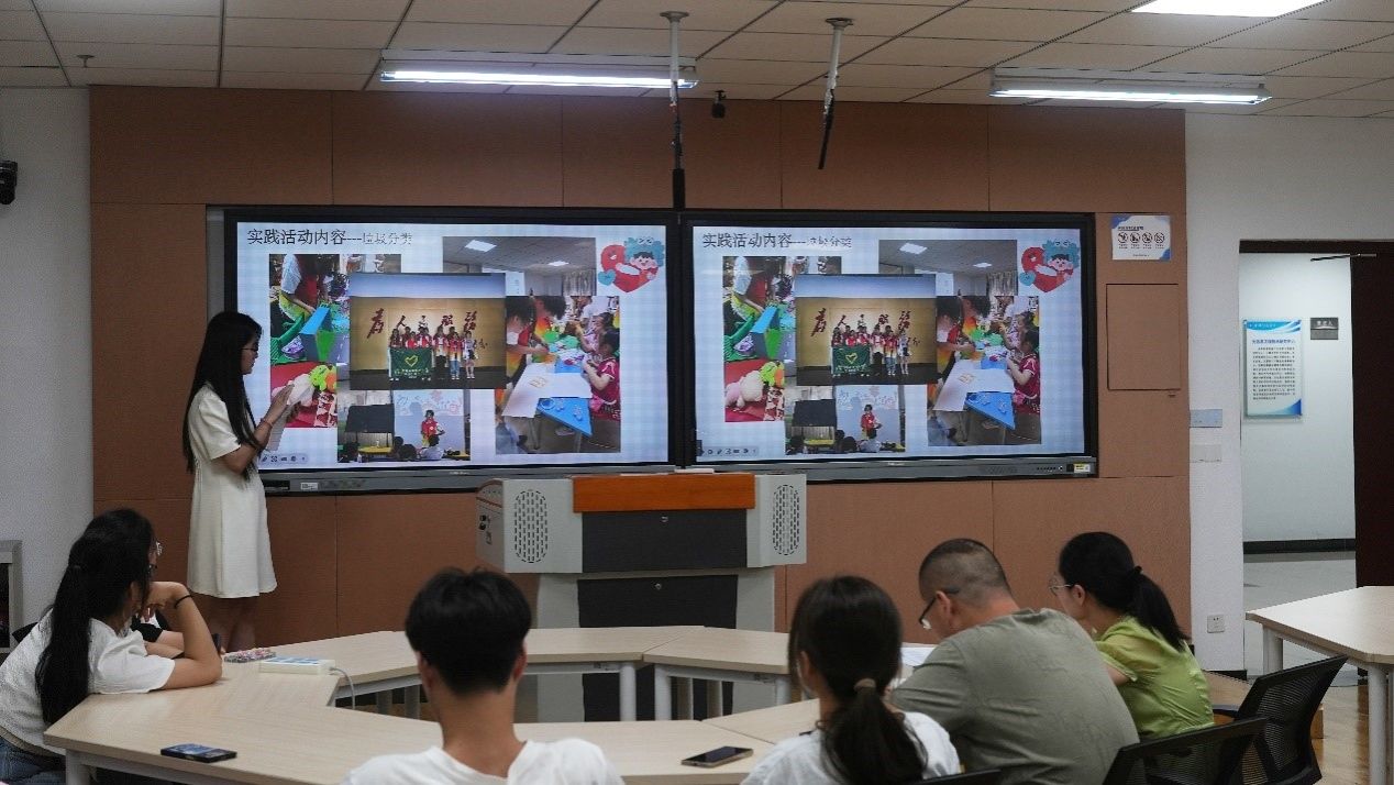 各团队负责人依次上台进行了汇报展示,通过PPT讲解、视频介绍等方式分别从活动背景、活动成果展示、思想感悟等方面展示了暑期社会实践的丰富经历和收获。评委老师从 思想政治、团队协作、实践质量、外宣报道、荣誉表彰、安全等方面对各团队的表现进行了打分,袁老师最后做了活动总结,肯定了各团队的实践成果,并提出一些改进和提高的建议,鼓励各团支部在暑期社会实践中总结经验,挖掘出更多优秀的项目。