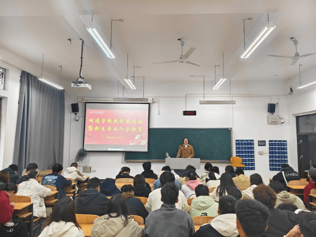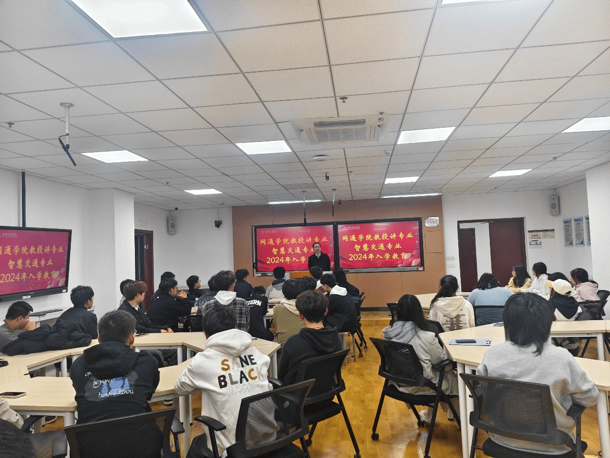 院长、智慧交通专业负责人王池社教授、智慧交通系主任史桂芳正高级工程师、通信工程专业负责人胡琳娜教授、通信系主任罗荣华副教授、光电信息科学与工程专业负责人杨慧珍教授、光电系主任叶全意副教授主讲,2024级全体学生参加,郑灵敏老师主持。