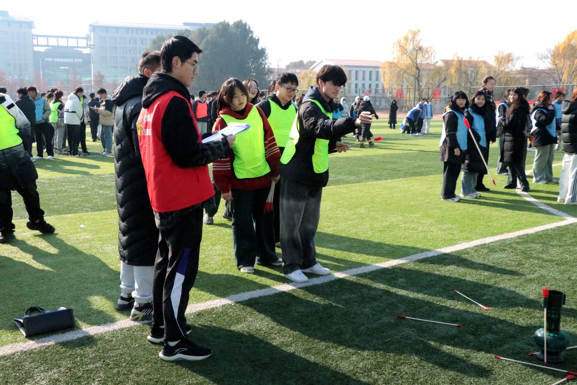 积极组织同学们参加了所有项目的比赛,在锤丸、投壶和健身操比赛中取得了前八名的好成绩。