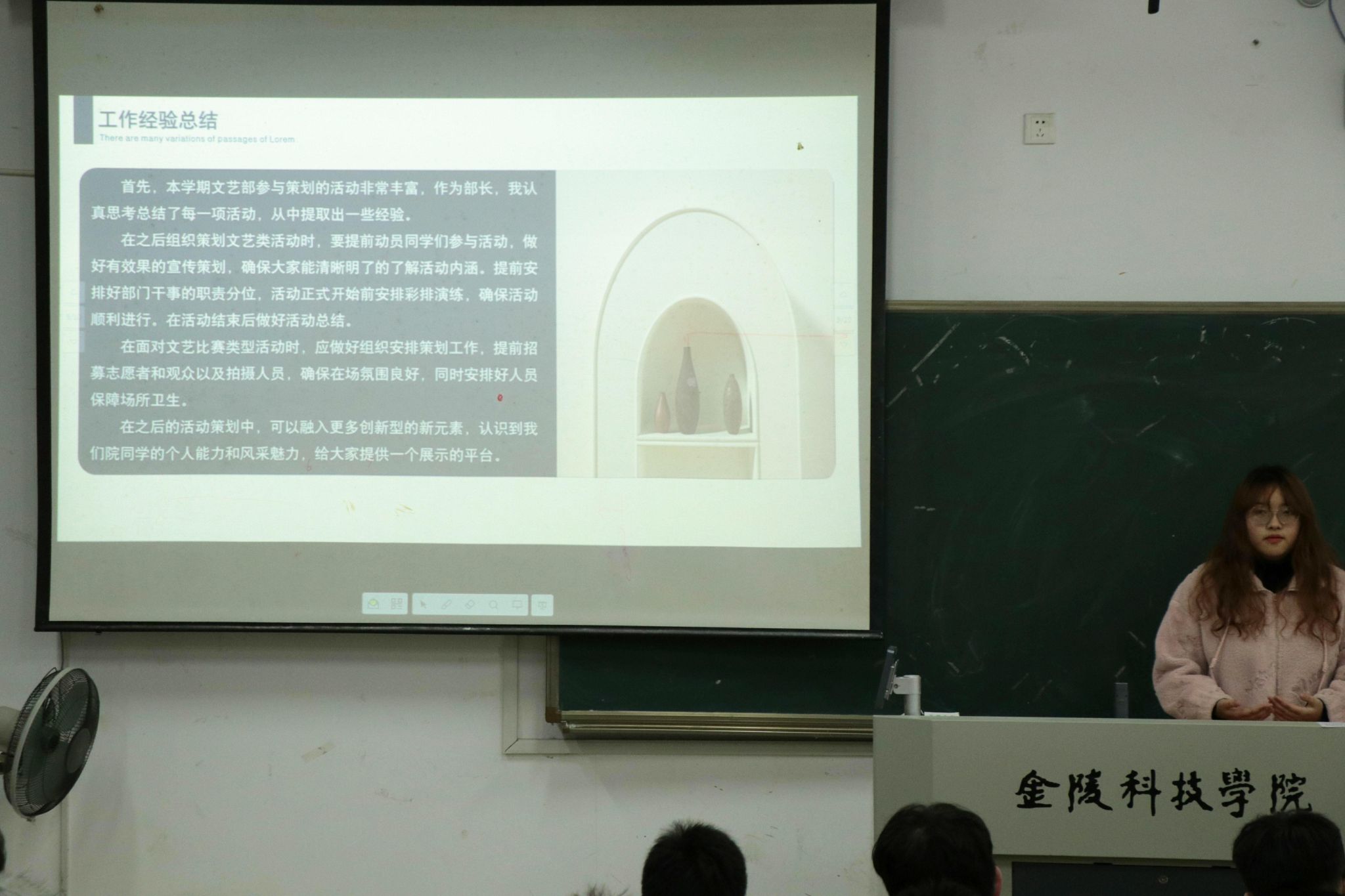 在现场汇报展示环节,各位同学结合自身工作,从团队建设、活动组织、服务同学、工作成绩、未来展望等多个方面进行了汇报,赢得了在场观众的一致好评。袁老师带领同学们学习了习近平主席发表的二0二五年新年贺词,要求学联继续完善述职考核评优机制,通过制度化、常态化的考核加强队伍建设、提升素质能力。她希望学联同学主动了解同学们的普遍需求和现实困难,担当好学校联系同学的桥梁纽带,希望同学们坚守正确的义利观,积极主动参与工作,沉下心来认真做事,在时间的积淀中不断提升自己的综合素质。