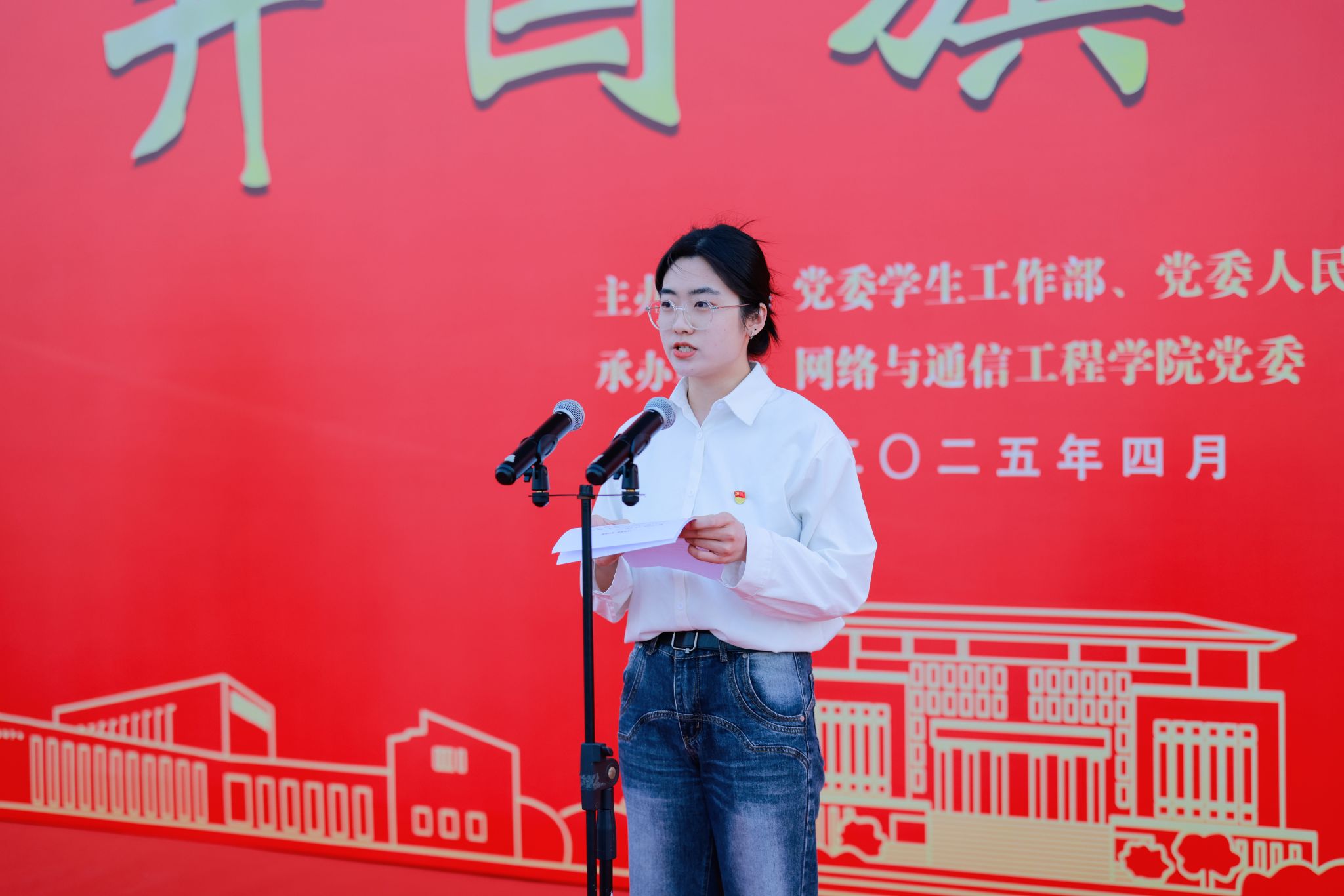 院长王池社以《青春之我,筑科技强国之梦》为主题进行讲话,围绕“科技报国的时代使命”“扎根专业的奋斗路径”“红色基因的精神传承”三个维度激励学生,希望同学们要以扎实的专业能力服务国家需求,在新时代科技强国的征程中贡献青春力量。