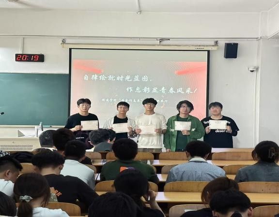 历经 21 天的坚持,众多同学收获颇丰。其中,22 级光电(单)的王苏徽与22级通信 1 班沈栩可两位同学凭借全勤打卡与高质量记录脱颖而出,荣获一等奖。5 月 13 日,学院为获奖学生举行颁奖仪式。这场活动不仅帮助同学们在学业与生活中养成规律作息,更显著提升了自我管理能力,在学院内营造出互帮互助、共同进步的良好氛围,为培育全面发展的高素质人才筑牢根基。