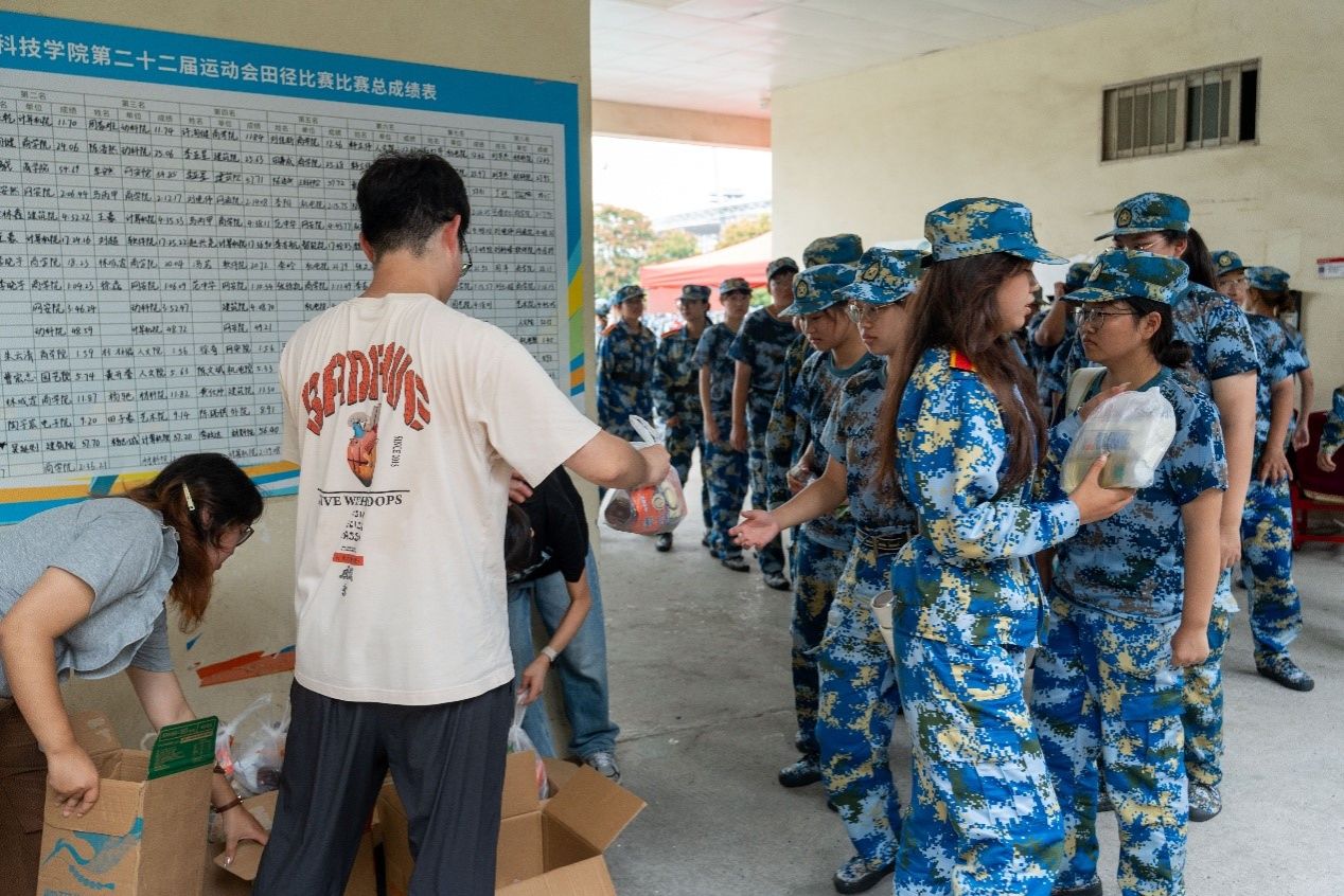 活动当天,学联同学早早准备好饮料、面包、零食等慰问物资,带着满满的热情来到军训场地,当看到新生们整齐划一的队列、刚劲有力的动作时,纷纷为大家的精气神点赞。上午训练结束后,学联同学将分装好的慰问物资一一送到新生手中,新生们脸上露出了欣喜的笑容,连日训练的疲惫仿佛也消散了不少。除了物资慰问,黄色直播