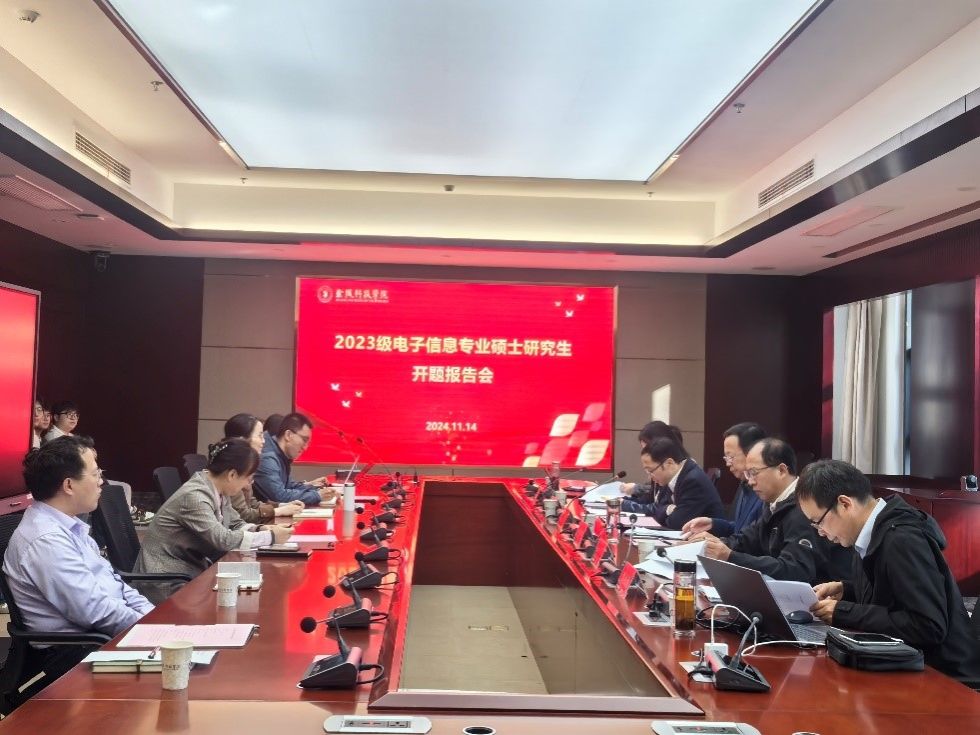 研究生培养质量,促进研究生创新能力,11月14日上午,2023级电子信息专业硕士研究生开题报告会在科技楼4号楼裙楼会议室举行。安徽理工大学计算机学院院长方贤进教授担任评审专家组组长,软件学院院长曾岳教授、南京交通集团数创中心高级工程师杨璐副主任、安徽理工大学计算机学院梁兴柱副教授、许家昌副教授担任评审专家组成员。院长王池社及黄色直播