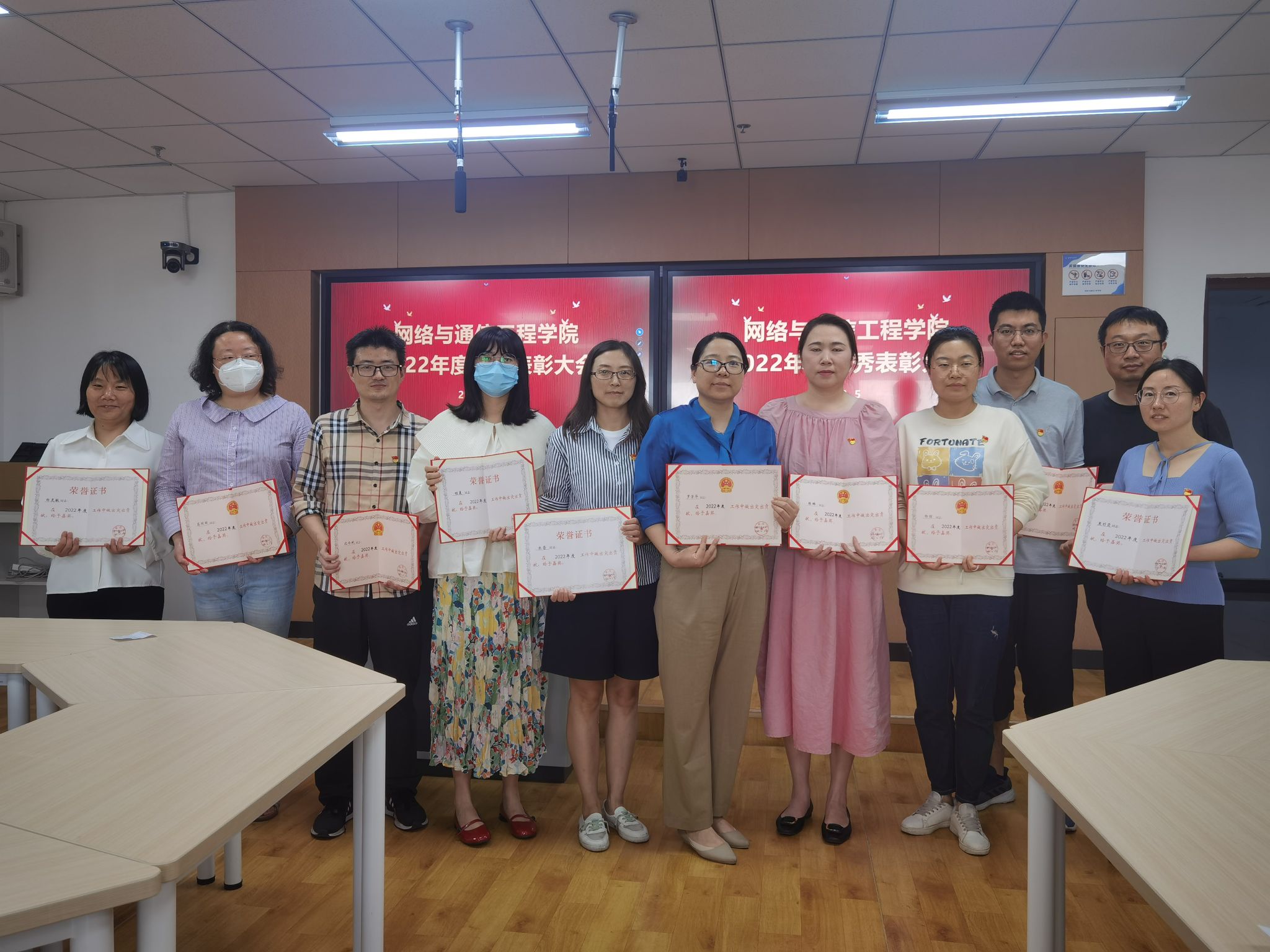 在科技4号楼604-1召开2022年度优秀表彰大会。院党委书记陈健、院长田锦、院党委副书记董宇、副院长王池社分别给2022年度获得记功、校优、师德优秀、院优荣誉的老师颁发了荣誉证书,表彰在教学、科研和管理服务岗位上作出重要贡献的教职工。