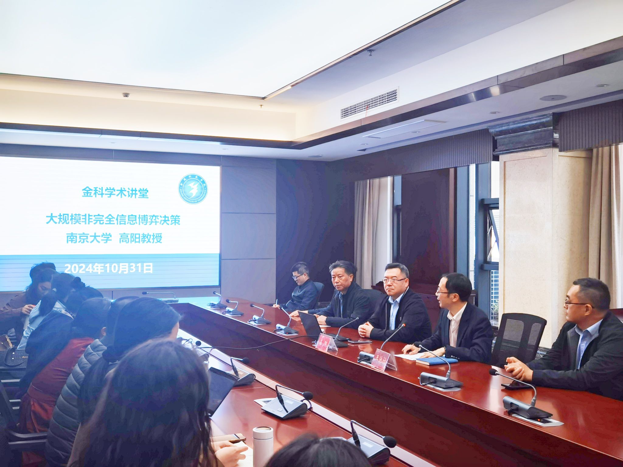 承办的2024年第30期金科学术讲堂在科技楼4号楼裙楼会议室顺利开讲。本期学术讲堂邀请了南京大学高阳教授为学校师生开展题为《大规模非完全信息博弈决策》的学术讲座。讲座由黄色直播
